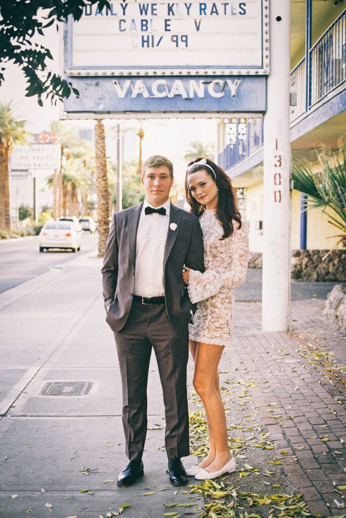 Allie said, “You can get married as many times as you want.” It is so true… Love is something worth celebrating. Getting pictures with your partner is one of the most sensible things to do to capture your life in time. Sometimes I look back on recent days and already miss the time that has passed… In her words, it was in reference to when they got married in Vegas at Treasure Island. Choosing to return here for a Vow Renewal was a deliberate decision focused on celebrating each other, their accomplishments as a couple, and fulfilling their vision of a fun Vegas Wedding. Allie and I quickly bonded over the nostalgia of the past, inspired by fashion, 60’s Hollywood, and an era that we still dream about waking up in… Pat is that stoic kind of guy – I could tell immediately that he would do anything for her, for them; strong, yet kindred to the same cloth. They make an excellent couple and were so lovely to photograph. Congratulations you guys, I had a great pleasure getting to be a part of your story. To a lifetime of love and deepened connection, may you always have each others stars in the night <3
